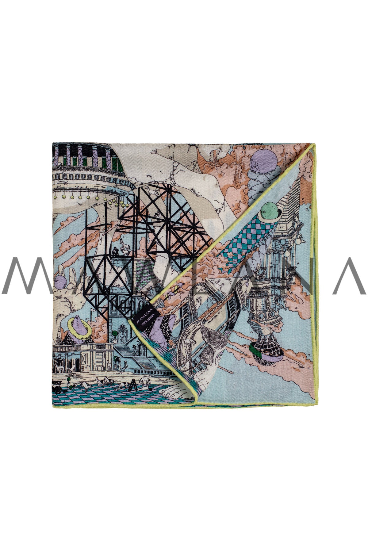Architectural Fantasy Cashmere Scarf – 70×70 cm