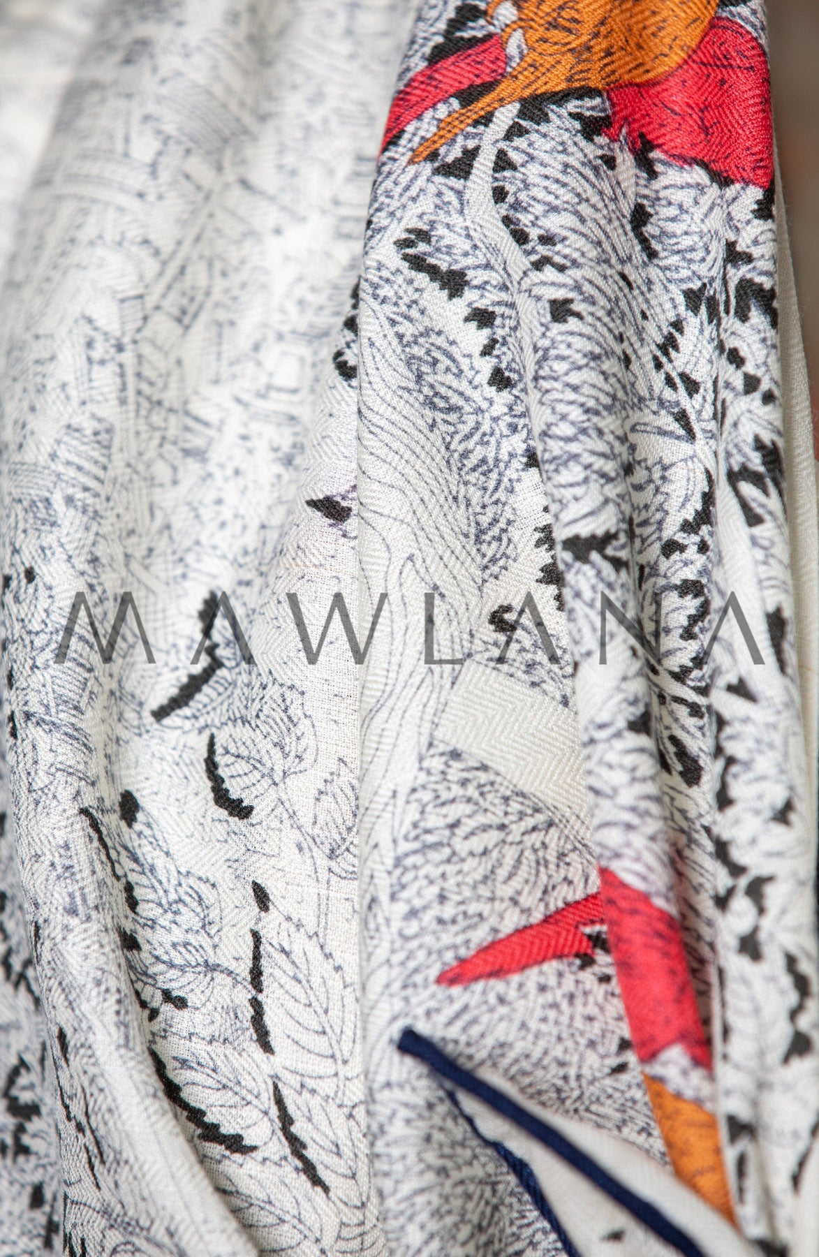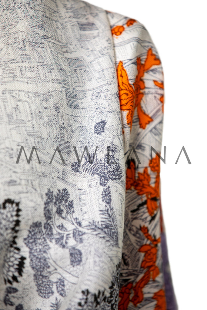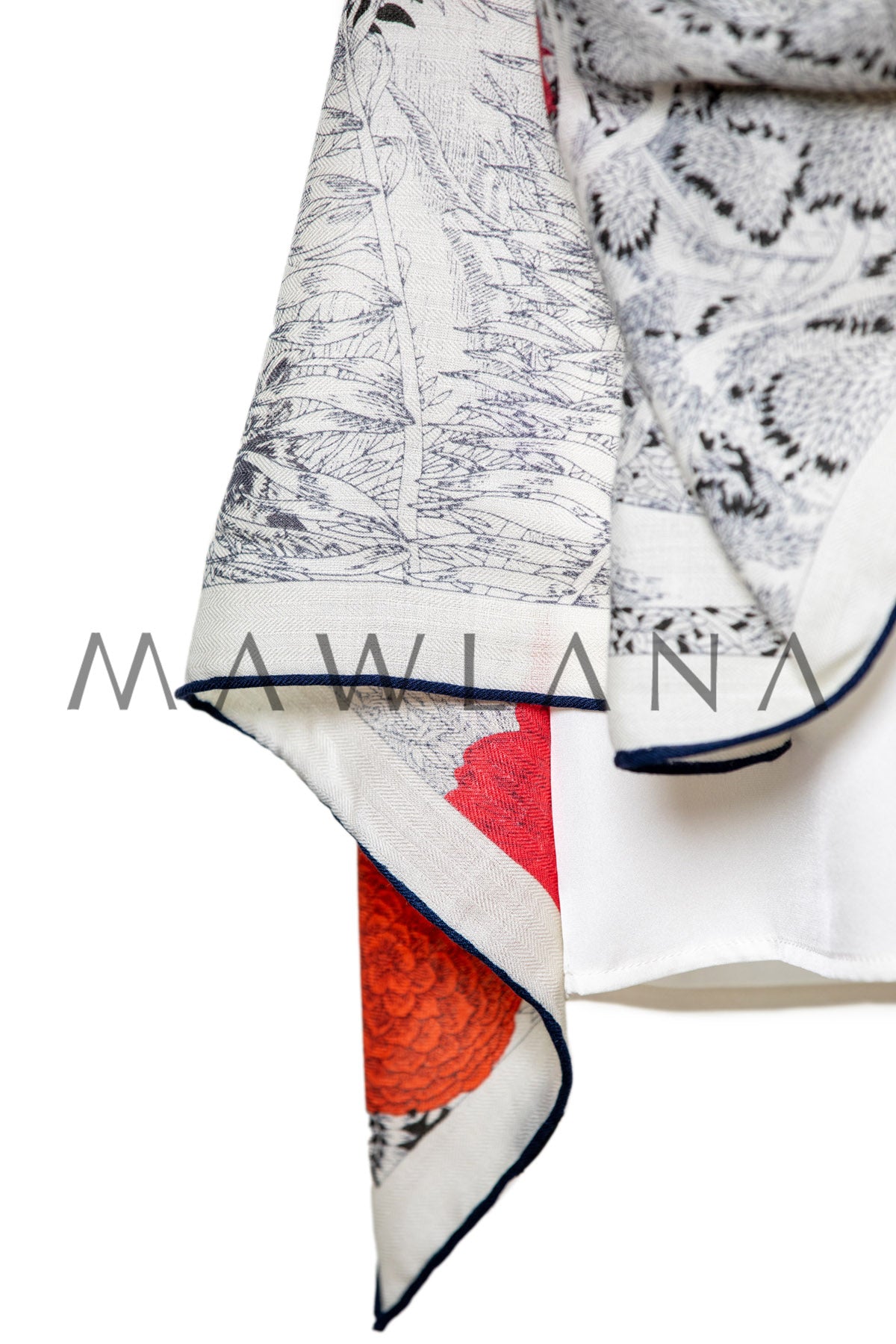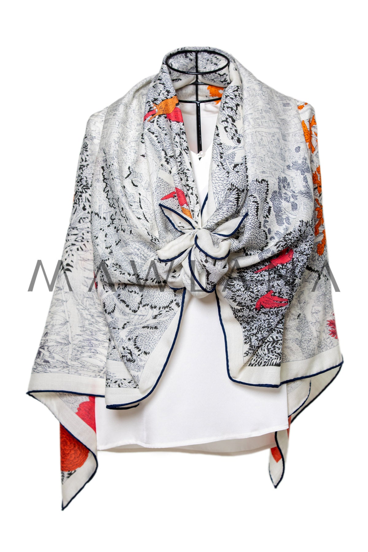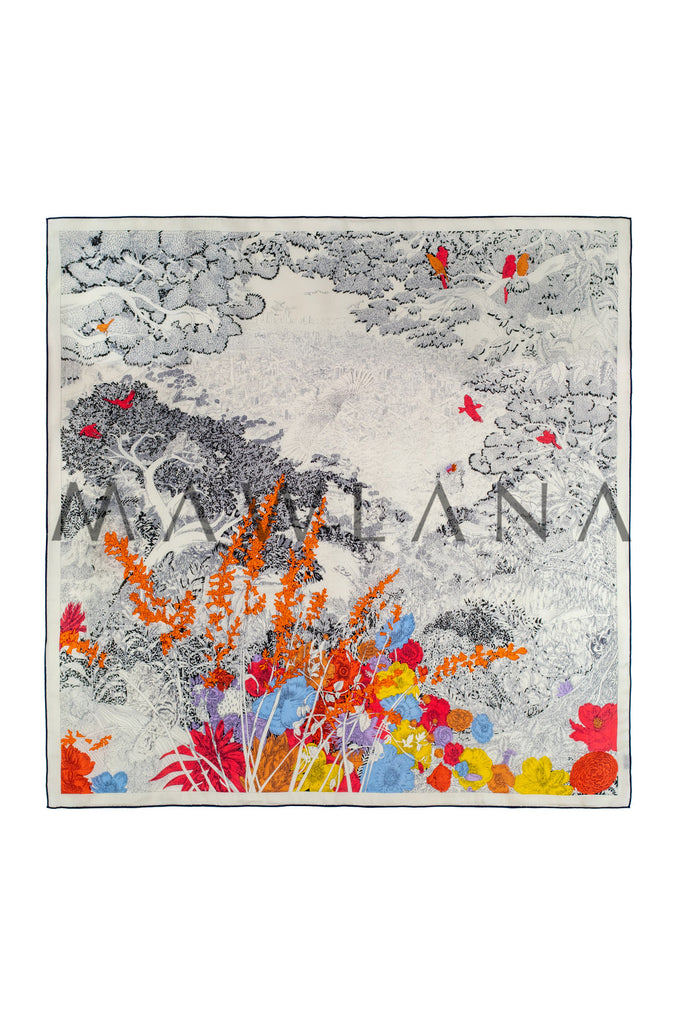 This scarf is a breathtaking contrast between stillness and energy, nature and imagination. Each corner tells its own story, inviting the eye to wander, discover, and feel.