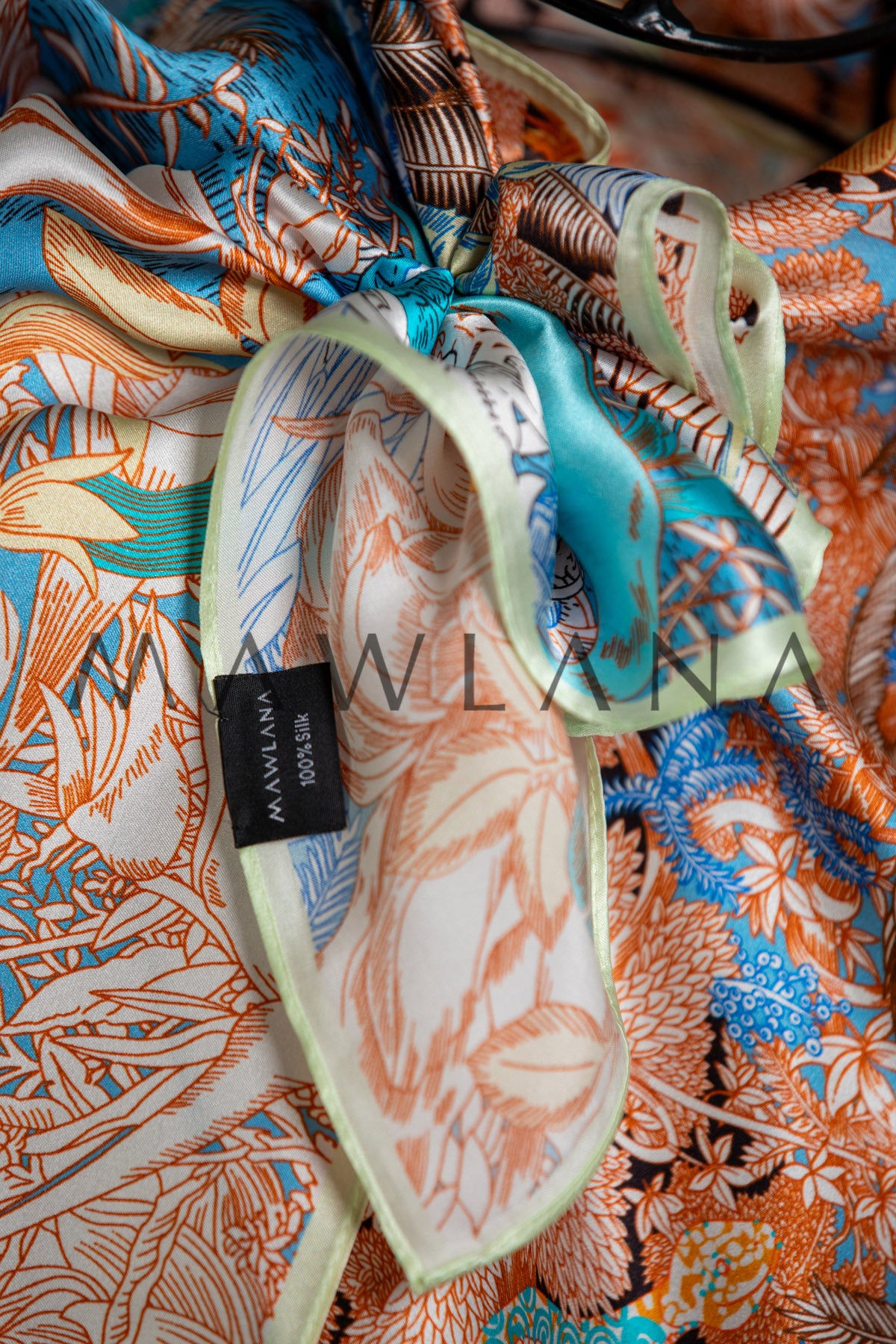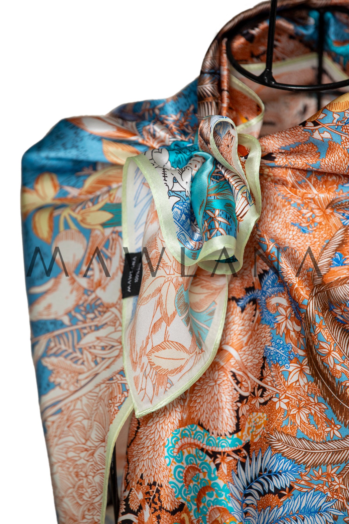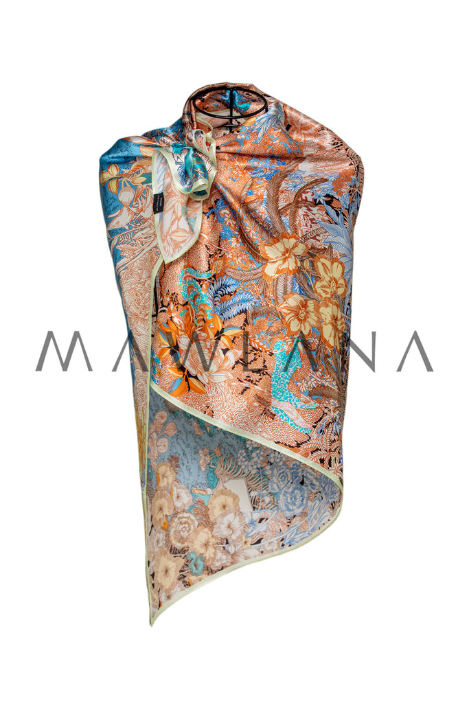 This luxurious shawl is made of 100% pure silk and does not slip at first, making it ideal for daily and special uses. With its 90x90 cm square form, it can be tied in different ways in a stylish way.