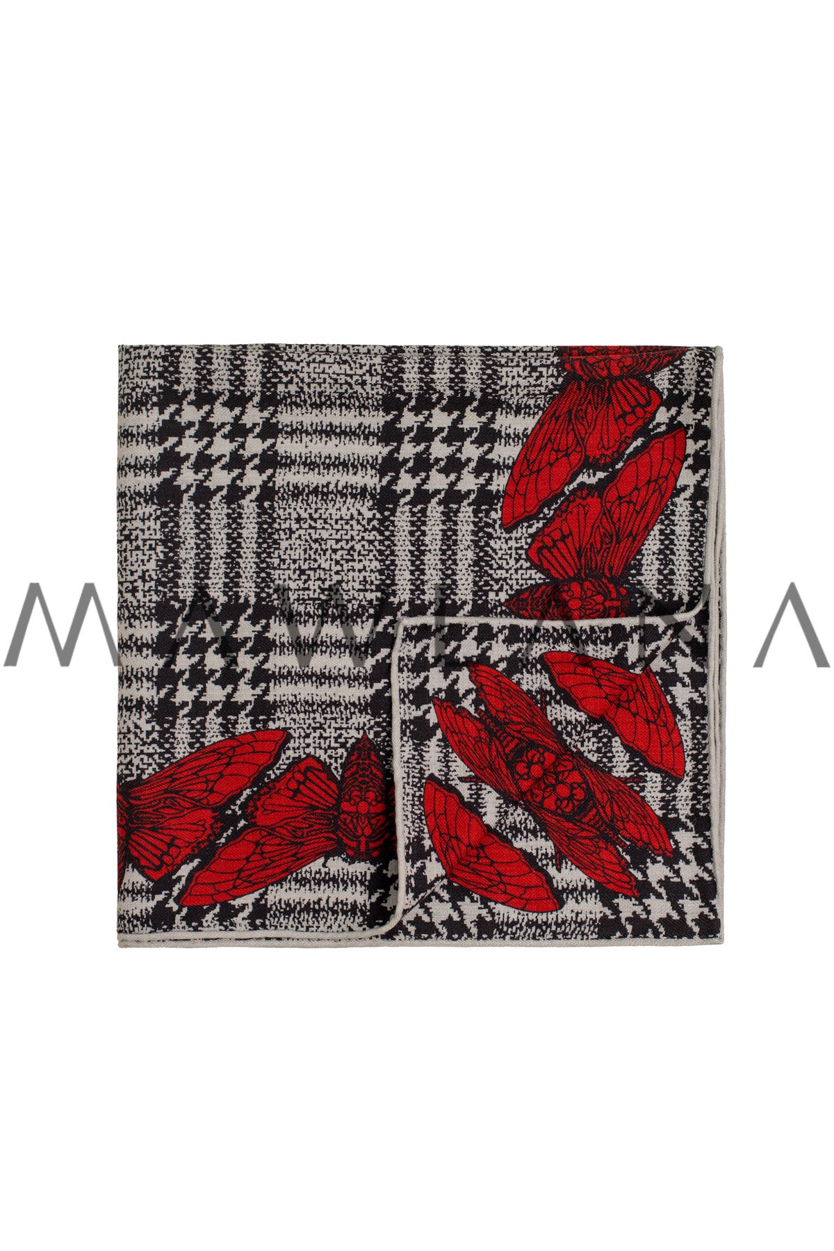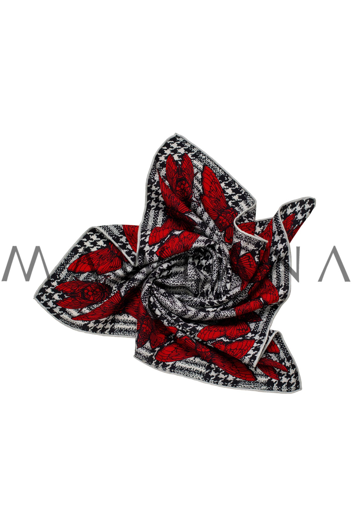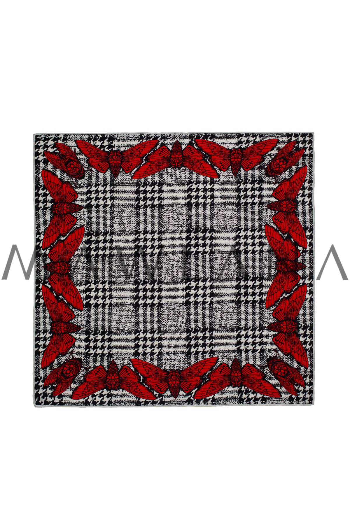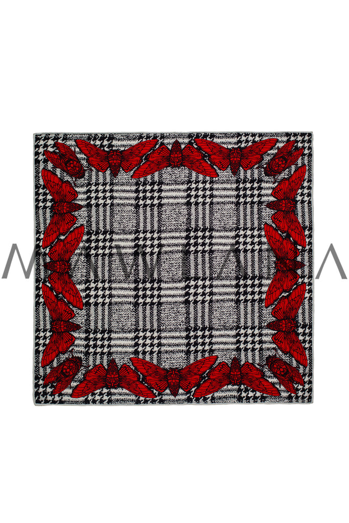 Houndstooth & Red Butterfly Cashmere Scarf – 70×70 cm