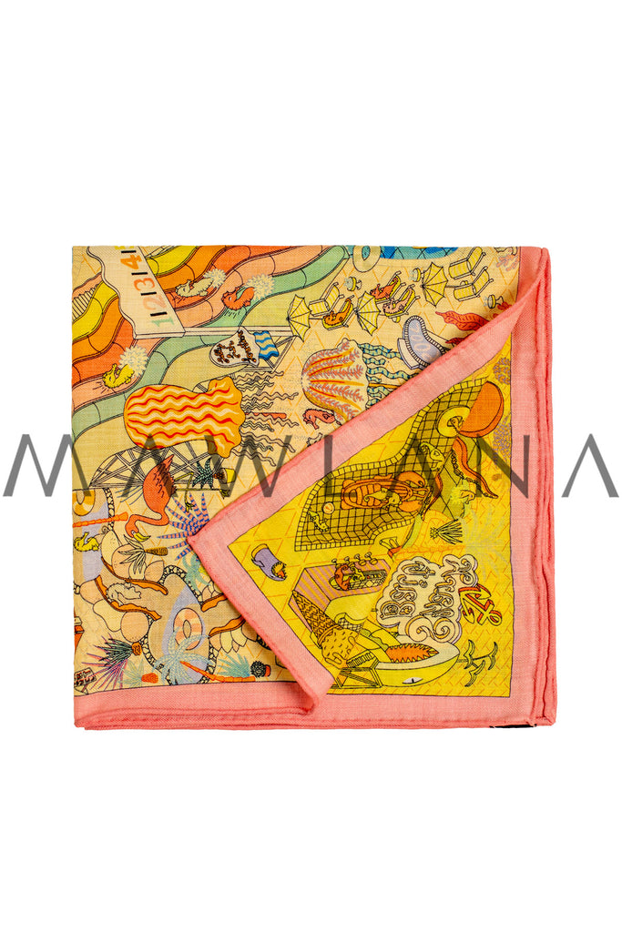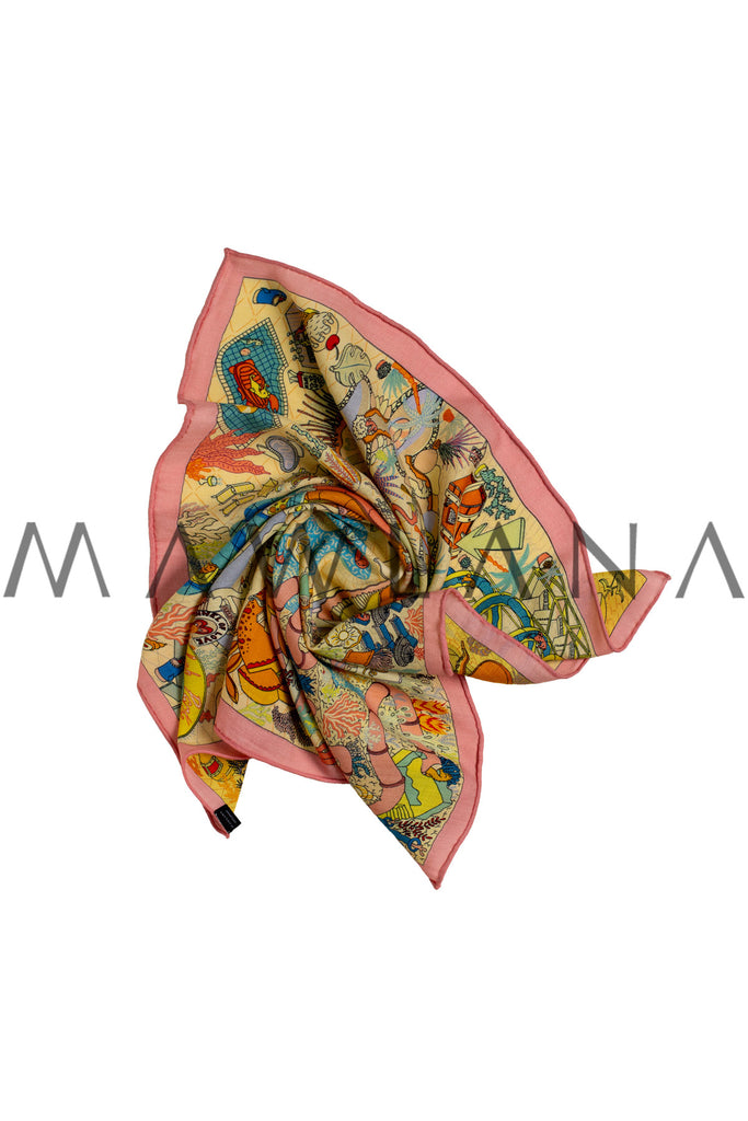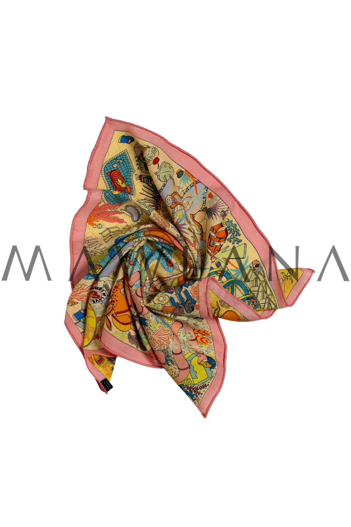 Playful Waterpark-Themed Cashmere Scarf – 70×70 cm