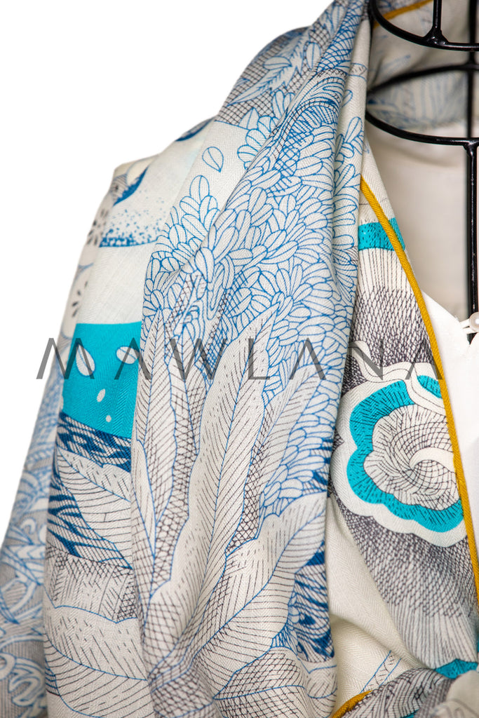 Crafted from 100% pure cashmere and measuring 140 × 140 cm, this scarf offers softness, elegance, and a poetic escape—perfect for dreamers and lovers of quiet luxury.